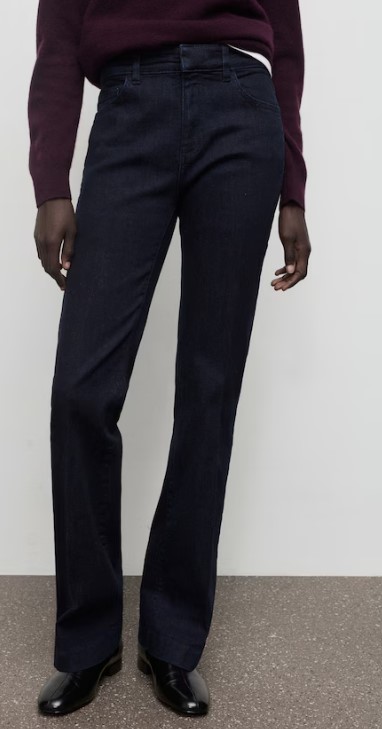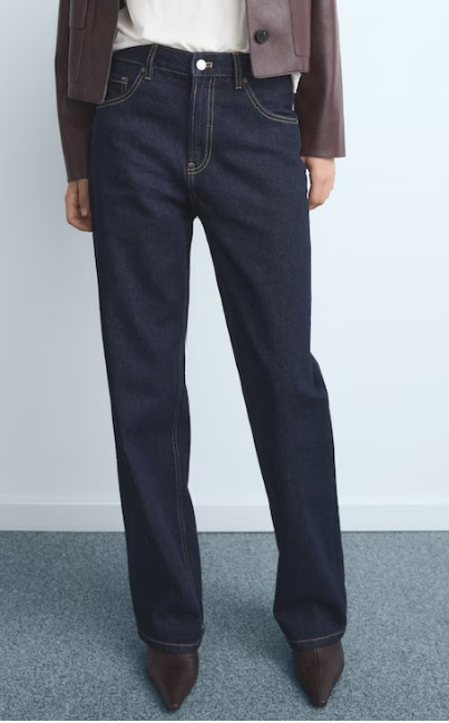 În silueta dreaptă merg foarte bine blugii de tip mom fit, blugii drepți și blugii evazați. Evită blugii skinny.