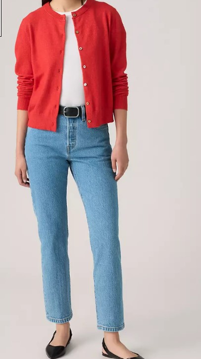- Blugi mom fit, un crop top și un cardigan mai lung.