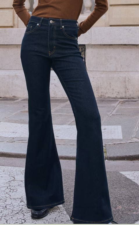 În silueta pară cei mai potriviți sunt blugii evazați și drepți, cu talie înaltă. Evită blugii skinny.