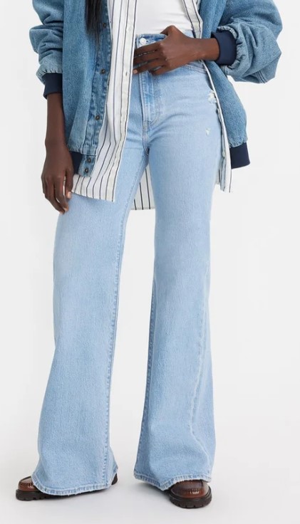 La blugii evazați merg foarte bine pantofii cu platformă, sneakers cu talpă mai înaltă, tocuri înalte de gen stiletto.