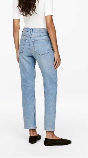 În silueta măr se potrivesc foarte bine blugii drepți, mom fit cu o talie medie. Evită blugii skinny, cei foarte mulați și talia înaltă.